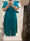 Не угадала с размером. Можно было бы исправить ситуацию, переставив пуговицы, при этом разрез получался слишком высоким, и плате в целом - не носибельным.