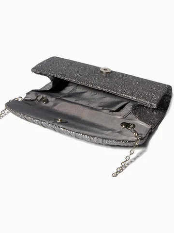 Сумка-клатч вечерняя на магните, на серебристой цепочке, блестящая, серебристая No brand
