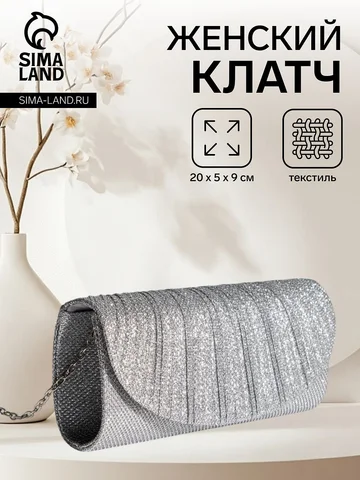 Сумка-клатч вечерняя на магните, на серебристой цепочке, блестящая, серебристая. Элегантный акцент для вашего образа! Женская серебристая мини-сумка - идеальный аксессуар, добавляющий блеск и стиль в любой наряд. Эта сумка с магнитной застежкой отличается лаконичностью и функциональностью.