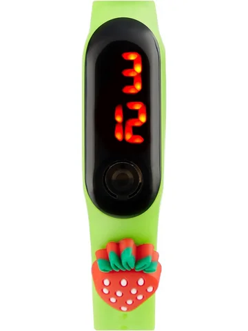 Часы наручные электронные «Клубничка», детские, ремешок силикон, зеленые. Детские часы станут любимым аксессуаром для ребенка. Наручные часы помогут дошкольникам и младшеклассникам подружиться со временем. Благодаря часам ребята всегда будут знать, который сейчас час и сколько времени осталось до начала или окончания занятий. Линза часов имеет высокую устойчивость к царапинам.