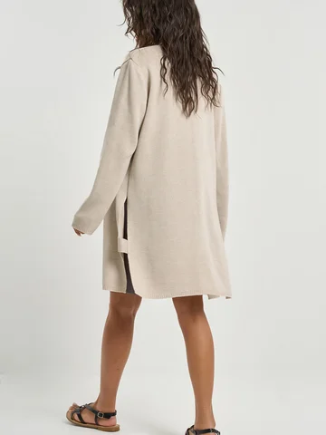 Длина рукава: 62 смОсобенности: Мягкий вязаный кардиган свободного силуэта. Изготовлен из меланжевой смесовой пряжихлопка и шерсти.Силуэт прямой. Рукава иниз изделия оформлены узкой резинкой в рубчик. По бокам выполнен разрез с перемычкой.