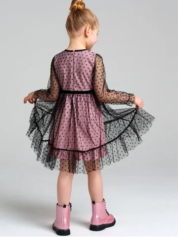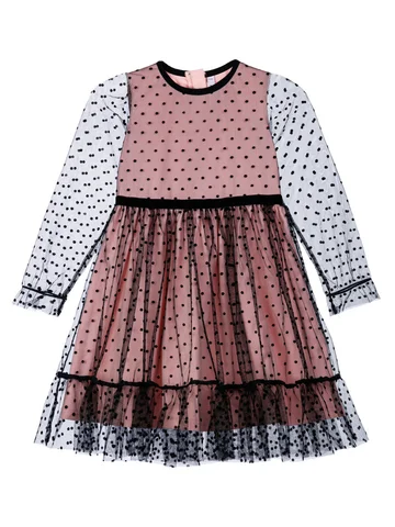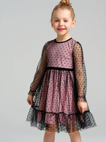 Платье трикотажное. Верх платья из мягкой сетки. Подкладка из трикотажа с высоким содержанием хлопка 95%. Благодаря наличию 5% эластана в составе ткани изделие держит форму. Застежка сзади на потайную молнию.