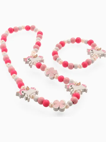 Набор детских украшений Выбражулька «Единорог», 2 предмета: бусы, браслет. Погрузитесь в мир ярких и милых аксессуаров с этим уникальным набором, созданным специально для юных модниц. В комплект входят бусы и браслет, украшенные забавным единорожком — символом фантазии и доброты. Их насыщенные цвета и оригинальный дизайн делают каждое украшение особенным, а универсальная тематика подходит для любого праздника или повседневной радости. Изготовленные из безопасных материалов — пластика и дерева, эти украшения приятны на ощупь и долговечны в использовании. Длина 35 см позволяет легко сочетать их с разными нарядами, а отсутствие фурнитуры делает их удобными для малышей. Такой набор станет отличным подарком на День защиты детей, выпускной или просто для радостного настроения в любой день.