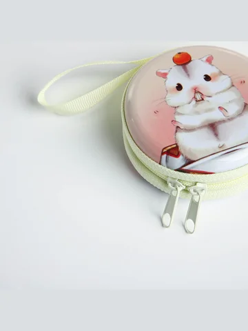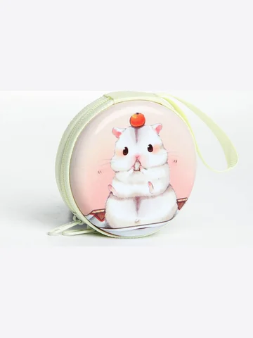 Футляр для монет, наушников «Хомячок с мандаринкой», на молнии, белый. Этот детский футляр помогает маленькой хозяйке бережно хранить свои первые сокровища. Надежная молния и прочный корпус защищают монетки, миниатюрные украшения или другие важные мелочи от потери. Яркий дизайн с животными делает его не просто практичным аксессуаром, а настоящим другом для повседневных приключений. Особенности
