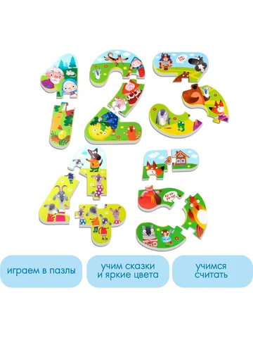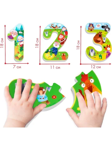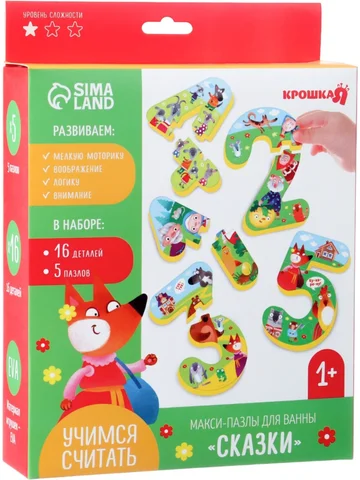 Пазлы мягкие для малышей Крошка Я «Учим цифры: Сказки», 5 пазлов, от 1 года. Превратите купание в увлекательное обучение! Набор мягких пазлов «Учим цифры: Сказки» — это яркий и безопасный способ развития логики, моторики и воображения. Пазлы из мягкого материала EVA не скользят и легко прилипают к поверхности. Особенности