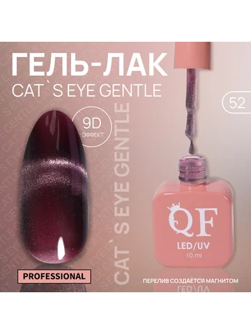 Гель лак для ногтей, кошачий глаз, трехфазный, 10 мл, LED/UV, фиолетовый (52). Гель лак «CAT`S EYE GENTLE» хрустальный кошачий глаз от бренда Queen fair (QF) - это тот самый гель лак с объемным 3D-эффектом для создания трендового маникюра Корейская кошка! Гель лак шелковая кошка состоит из мельчайших магнитных частичек, за счет них узор получается объемным и завораживающим. Хрустальная кошка наносится в 1 слой на покрытие любого цвета. Мaгнитный лaк QF создаст уникальный дизайн благодаря мелкому помолу, а эффект кошачьего глаза станет еще нежнее! Гель лак смотрится более насыщенно на черной подложке. Мелкие серебряные блестки легко поддаются воздействию магнита. Дайте волю воображению, создавайте различные рисунки, нежное корейское сияние и многое другое. Розовый, бежевый, зеленый, синий, красный, коричневый, голубой магнитный гель-лак с деликатным сиянием используется совместно с магнитом. Самовыравнивающийся гель лак блестящий для маникюра содержит блестки, шиммер и глитер. За счет них гель лак с блесками особенно эффектно смотрится на свету. Выбирайте профессиональную продукцию!