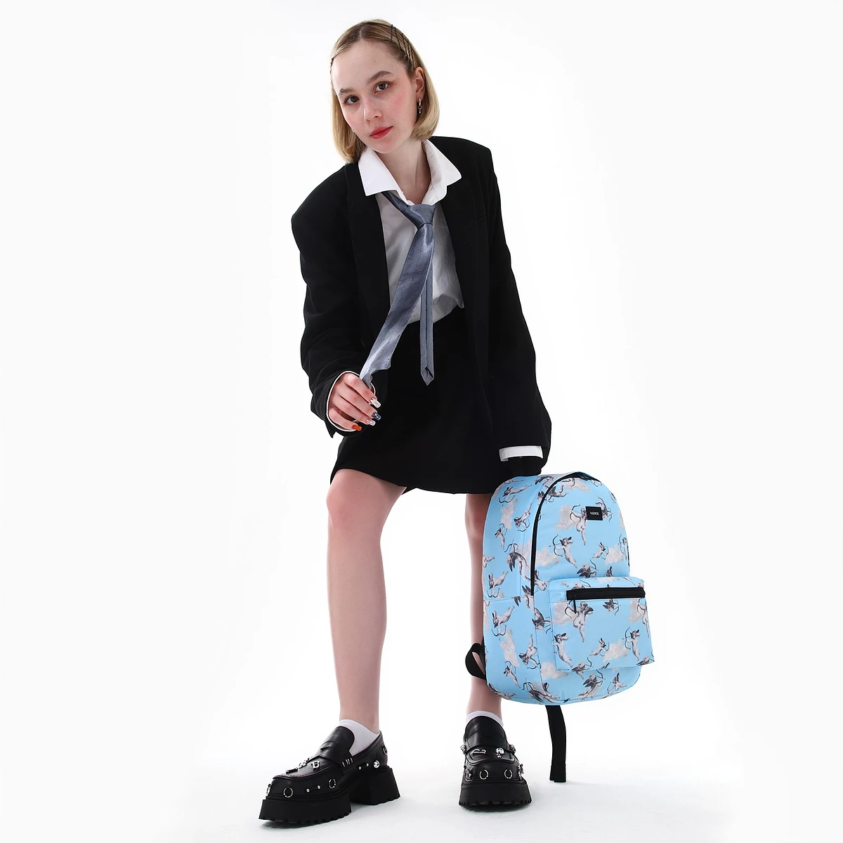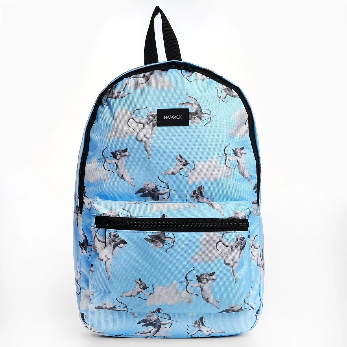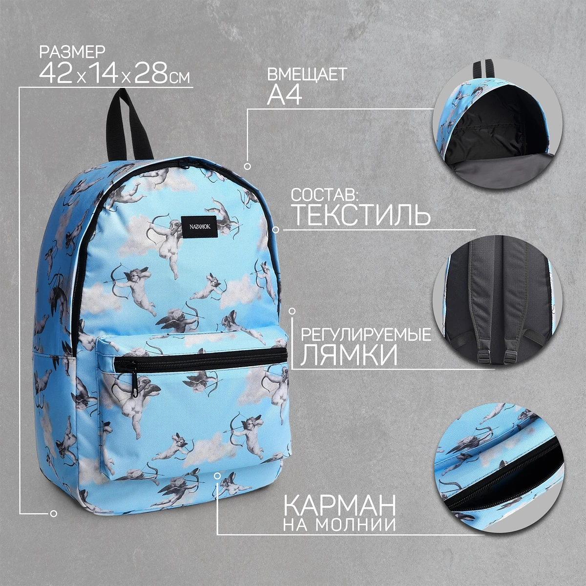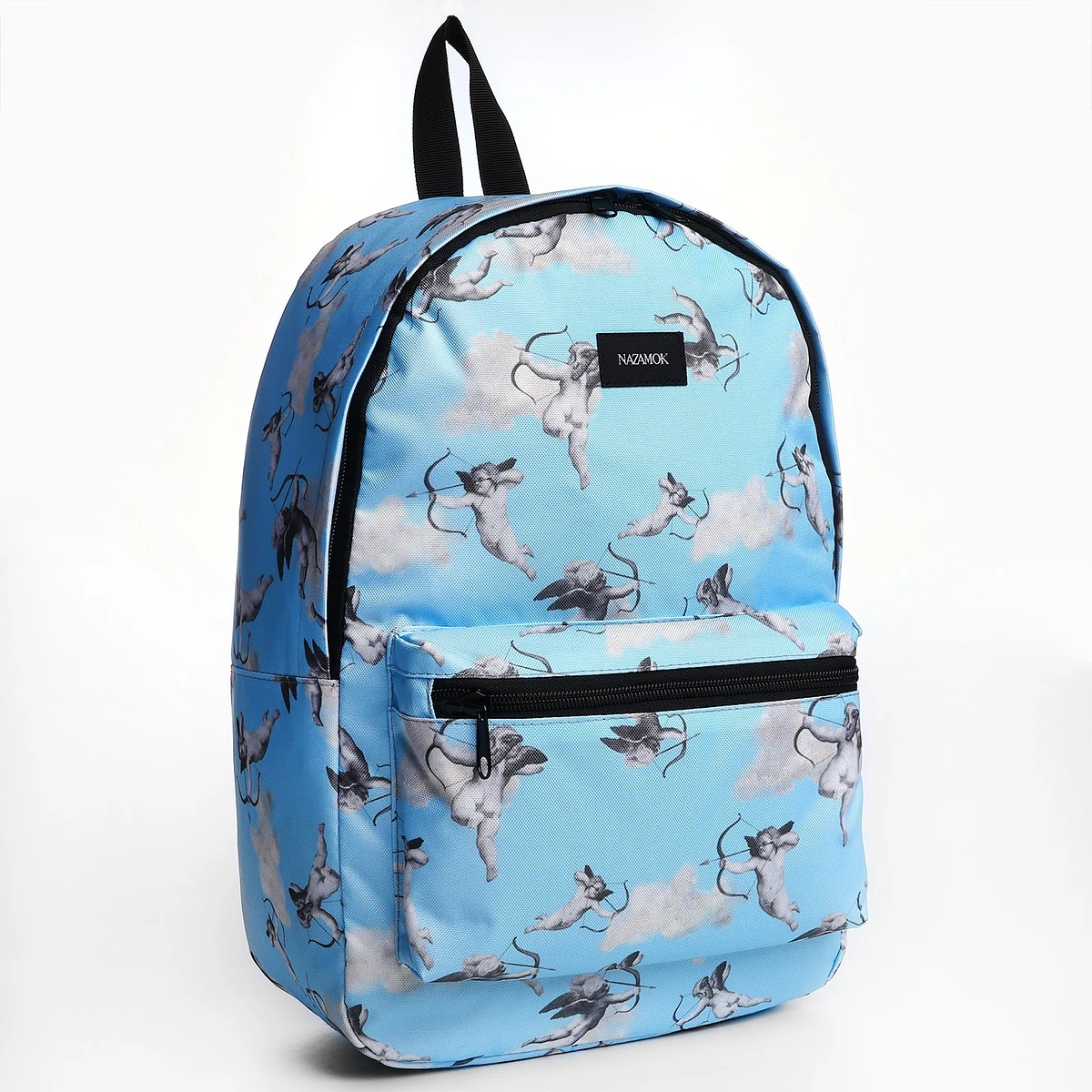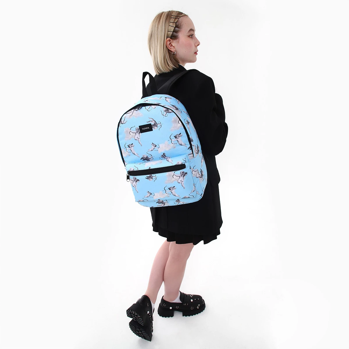 Рюкзак школьный текстильный «Ангелы», 42×14×28 см, голубой.