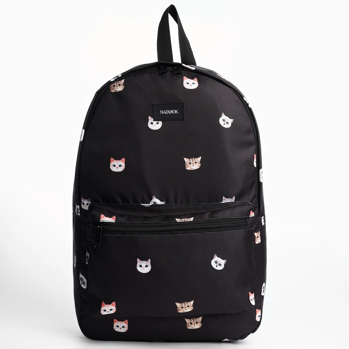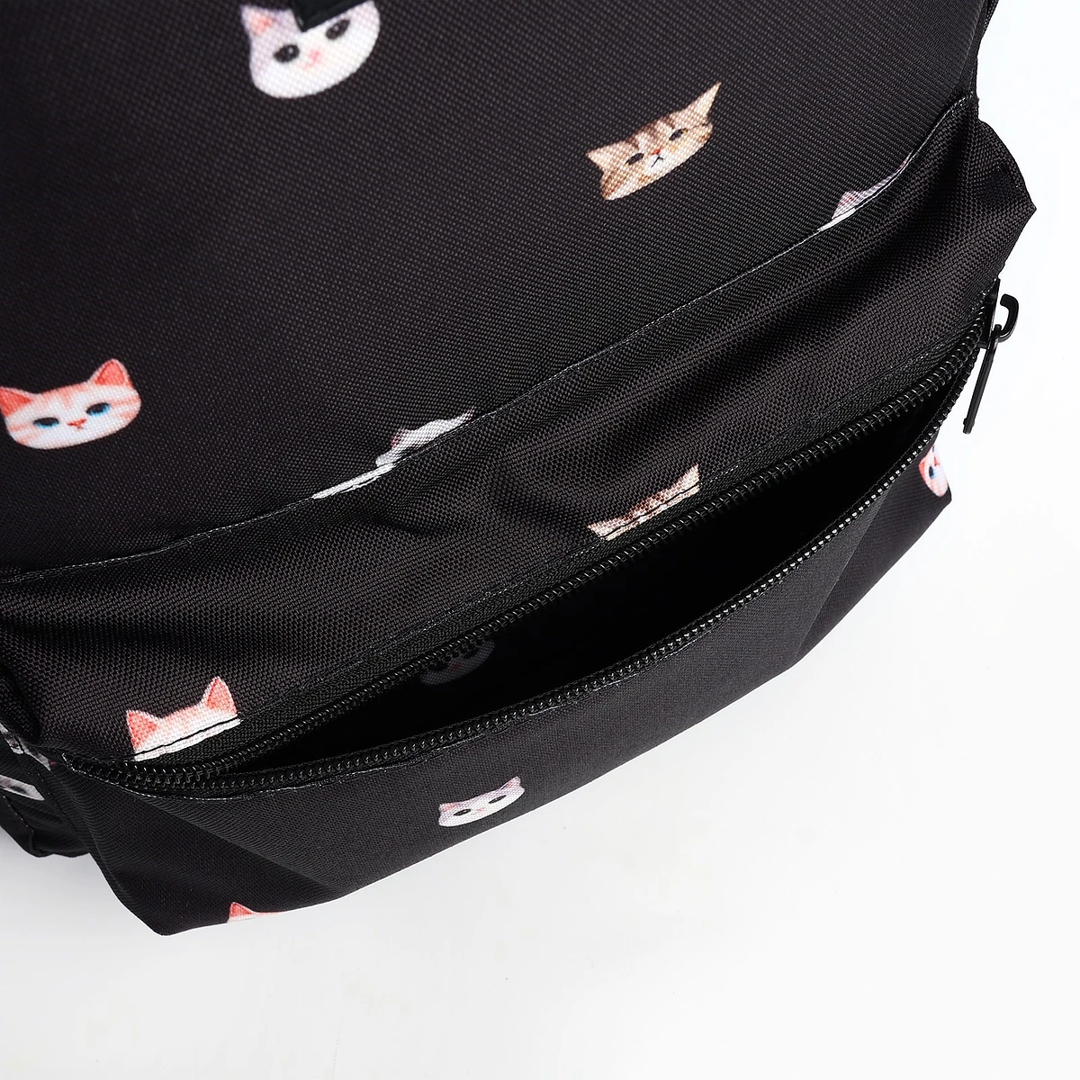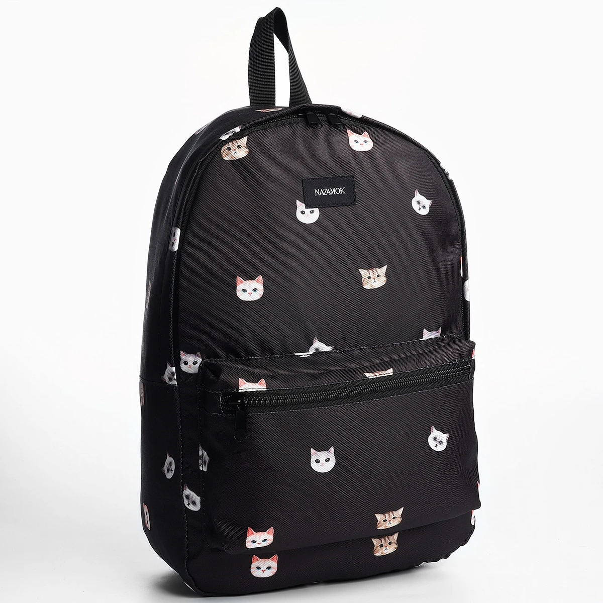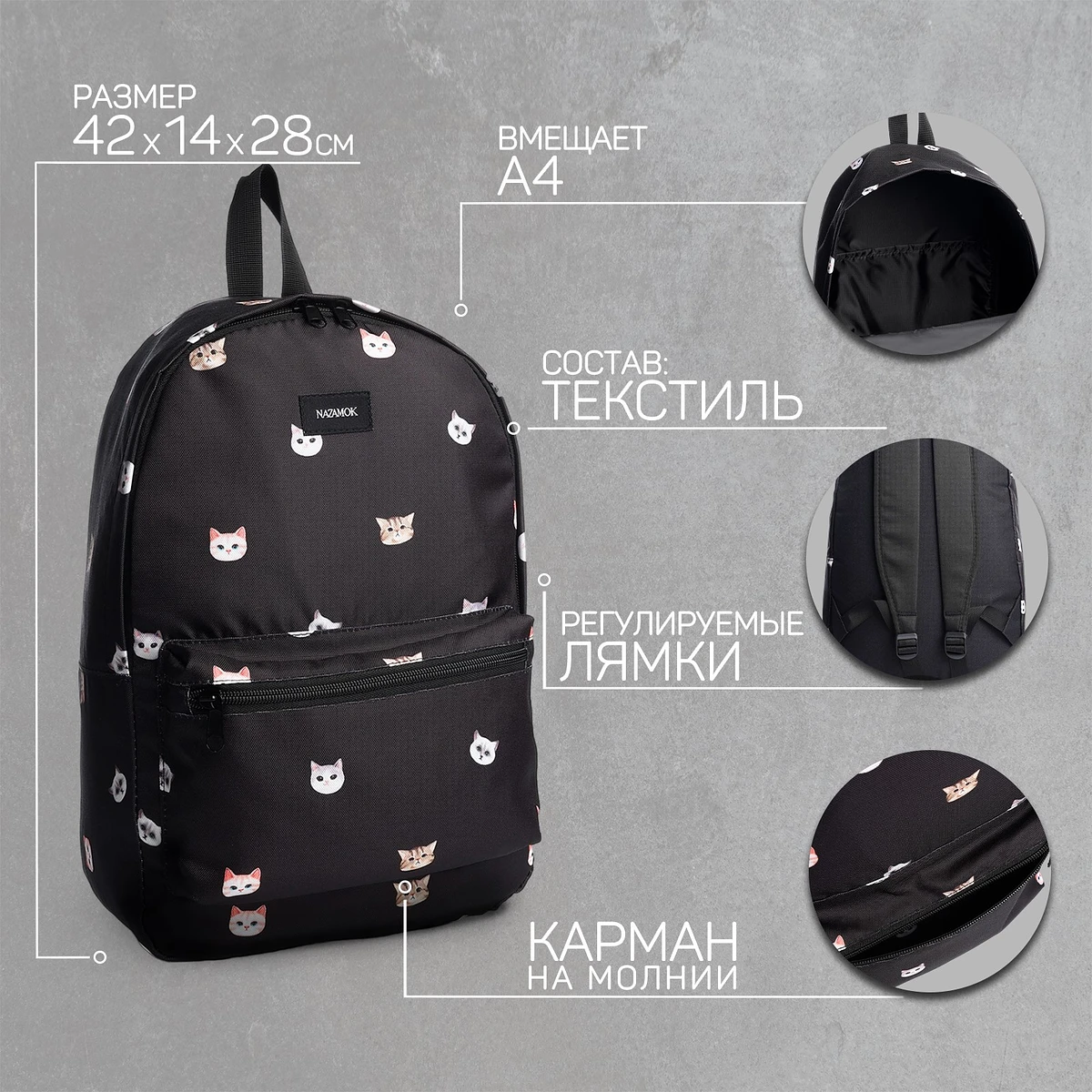 Рюкзак школьный текстильный «Коты», 42×14×28 см, черный.