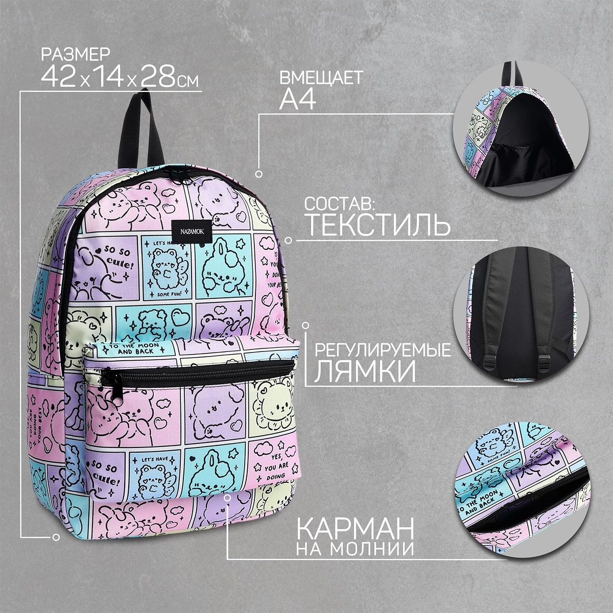 Рюкзак школьный текстильный NAZAMOK