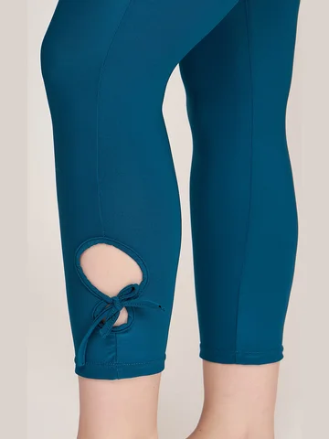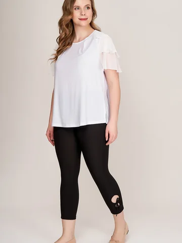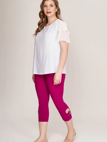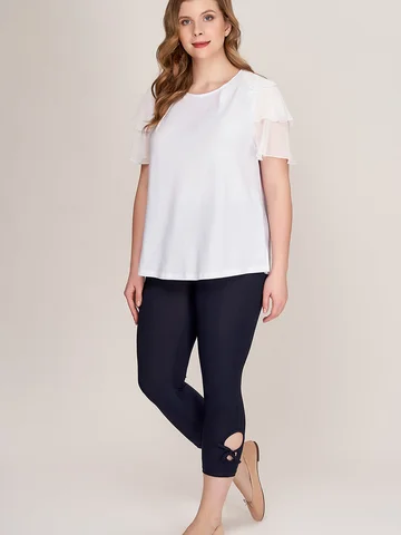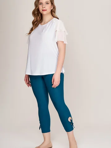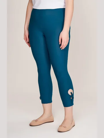 Великолепные утягивающие брюки капри из тонкого эластичного материала. Модель со средней комфортной посадкой, на круговом поясе с резинкой, с двойными круглыми вырезами- «завлекалочками» на завязках на голени сбоку, придающими образу легкое кокетство. Приятный телу трикотаж с добавлением эластана не растягивается, хорошо держит форму, плотно облегает ногу, не стесняет движений.