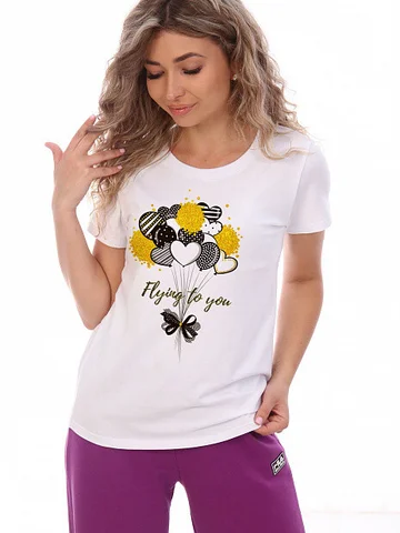 Футболка хорошего качества и пошива, купила жёлтые летние брюки, получился замечательный комплект! СПАСИБО!