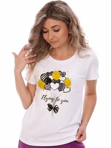 Футболка женская с оригинальным принтом, из хлопковой ткани с лайкрой. Ткань держит форму, не вытягивается, приятная на ощупь. Стильная футболка классического фасона с отрезным рукавом. Посадка свободная. Такая модель подойдет абсолютно всем и станет необходимой вещью в вашем гардеробе. Состав: 95% хлопок, 5% лайкра. Длина изделия 61 см.