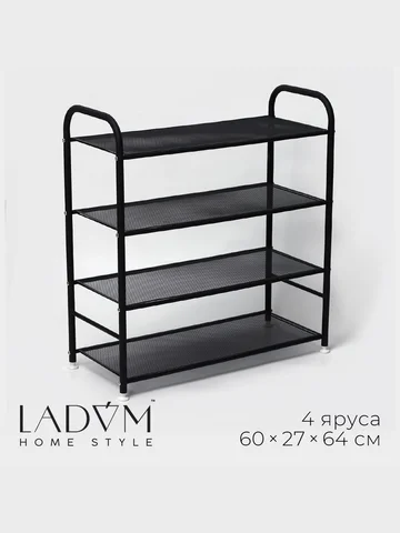 Обувница металлическая ladо́m, 4 яруса, 60×27×64 см, черная LaDо́m