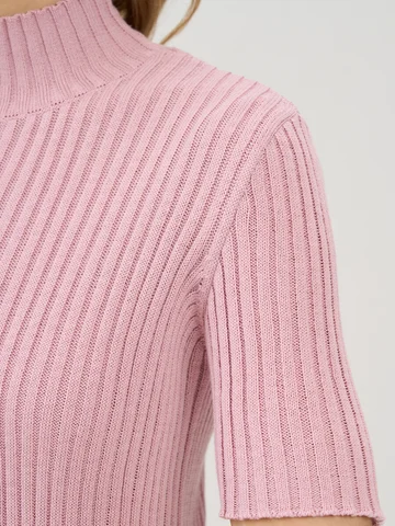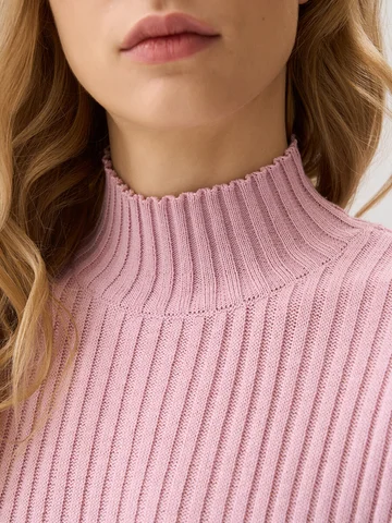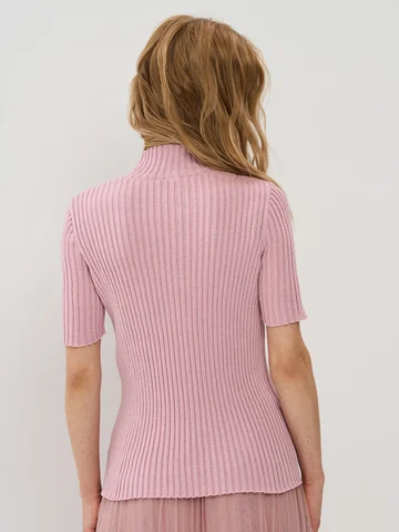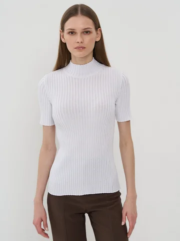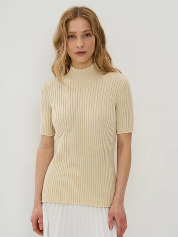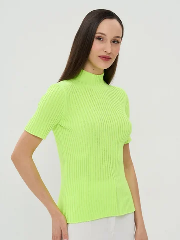 Не очень люблю трикотаж такой рифленой вязки, но подкупил цвет и хорошая посадка по фигуре. Брала под сарафан на работу. Освежает, смотрится неплохо.