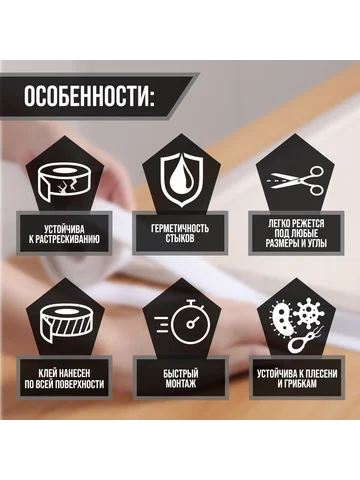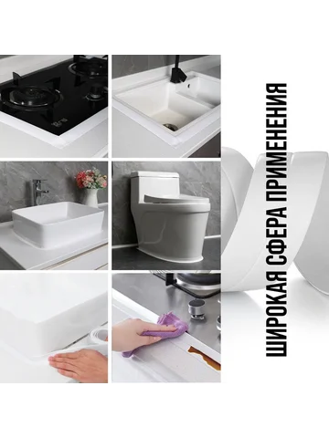 - Универсальное применение: Подходит для различных поверхностей, таких как ванны, раковины и душевые уголки, адаптируясь к их форме и размерам.