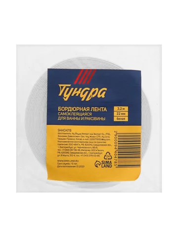 Лента бордюрная тундра, для ванн и раковин, самоклеящаяся, белая, 22 мм × 3.2 м TUNDRA