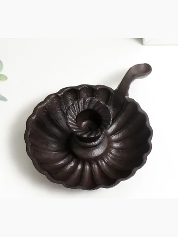 Металлический подсвечник на 1 свечу «Раковина», чугун, с ручкой, 6×13×19 см.