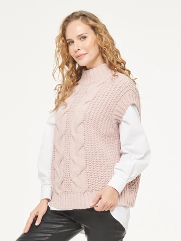 Жилет тёплый.Вязка крупная.Цвет бледно - розовый.