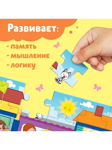 - Классический формат пазлов удобен для занятий дома или в поездке.