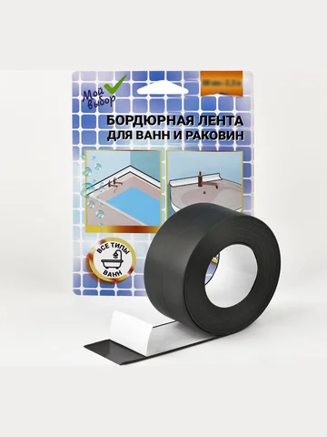 Бордюрная лента «Мой выбор» для ванны и раковины, черная, 38 мм × 3.2 м. Обеспечьте надежную защиту вашего дома от влаги и грязи с нашей бордюрной самоклеящейся лентой. Эффективный монтаж ванны, унитаза, раковины и варочной поверхности станет легким и качественным, экономя ваше время и ресурсы. Наша клейкая лента обеспечивает долговременную защиту от плесени, грибка и грязи, а также идеально закрывает ненавистные щели, подобно скотчу. Ее полная водонепроницаемость делает ее идеальным выбором для стыков ванны, унитаза, раковины и варочной поверхности. Широкий размер и влагоотталкивающие свойства клейкой ленты придают ей прочность, превращая ее в надежный плинтус для вашего кухонного гарнитура. Защитите свой дом легко и эффективно с нашей бордюрной лентой, созданной для долговременной безопасности и уюта. Способ применения: