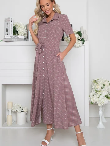 Платье-рубашка длиной миди выполнена из плательной ткани с коротким рукавом. Мы тщательно отработали посадку - в этом легком летящем платье Вы будете выглядеть превосходно и неизменно чувствовать себя в центре внимания. За счет выверенного кроя платье визуально стройнит и вытягивает фигуру, оно подойдет практически для всех типов фигуры. Это платье рубашка в длине макси станет прекрасной основой базового гардероба - дополнив его украшениями и обувью в разных стилях, Вы создадите множество новых образов. При заказе обращайте внимание на объем груди, на талии Вы будете регулировать его поясом, а объем бедер не важен - летящая юбка отлично сядет на любые бедра, а если необходимо - скроет то, что хотелось бы скрыть, подчеркнув при этом женственность силуэта. Ткань приятна к коже и практически не мнется.