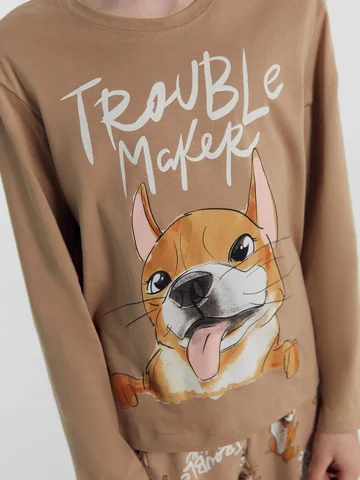 Домашний костюмчик с драконом понравился качеством и оригинальным рисунком. На спокойном бежевом фоне джемпера удивительно красивый Дракон. Брючки тоже в дракончиках. Отличный комплект! Просто находка для мальчика-Дракона. Спасибо!!!