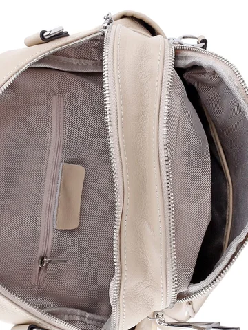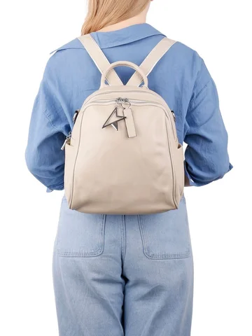 Рюкзак женский из натуральной кожи с ручкой, закрывается на молнию. В городском спортивном стиле. Подходит для повседневной носки, учебы, в качестве подарка. Внутри два отделения, перегородка на молнии, один карман на молнии, один открытый карман. Сзади карман на молнии. По бокам открытые карманы. Высота ручки 7см. На дне рюкзака ножек нет. Плечевые лямки из текcтиля и кожи с регулировкой длины. Максимальная длина лямок 96 см. В комплект входит съемный плечевой ремень из текстиля и натуральной кожи длиной 78 см. Вес в упаковке 850 гр, без упаковки 750 гр. Происхождение бренда Россия. Производство Китай. Высота - 28 см. Длина - 28 см. Глубина - 14 см