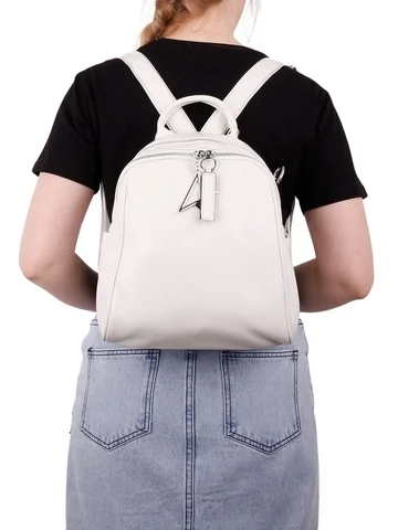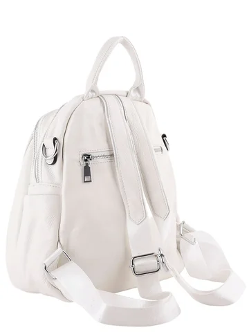 Рюкзак женский из натуральной кожи с ручкой, закрывается на молнию. В городском спортивном стиле. Подходит для повседневной носки, учебы, в качестве подарка. Внутри два отделения, перегородка на молнии, один карман на молнии, один открытый карман. Сзади карман на молнии. По бокам открытые карманы. Высота ручки 7см. На дне рюкзака ножек нет. Плечевые лямки из текcтиля и кожи с регулировкой длины. Максимальная длина лямок 96 см.В комплект входит съемный плечевой ремень из текстиля и натуральной кожи длиной 78 см. Вес в упаковке 850 гр, без упаковки 750 гр. Происхождение бренда Россия. Производство Китай. Высота - 28 см. Длина - 28 см. Глубина - 14 см