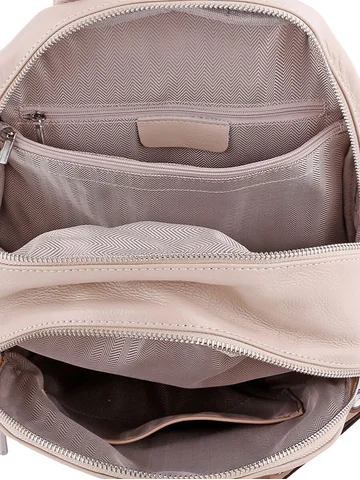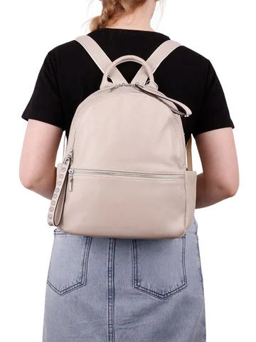 Рюкзак женский из натуральной кожи с ручкой, закрывается на молнию. В городском спортивном стиле. Подходит для повседневной носки, учебы, в качестве подарка. Внутри два отделения, перегородка на молнии, один карман на молнии, один открытый карман. Спереди карман на молнии. Сзади карман на молнии. По бокам открытые карманы. На дне рюкзака ножек нет. Высота ручки 8см.Плечевые лямки из текcтиля и натуральной кожи с регулировкой длины. Максимальная длина лямок 96 см. Вес в упаковке 850 гр, без упаковки 750 гр. Происхождение бренда Россия. Производство Китай. Высота - 30 см. Длина - 28 см. Глубина - 14 см