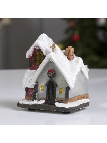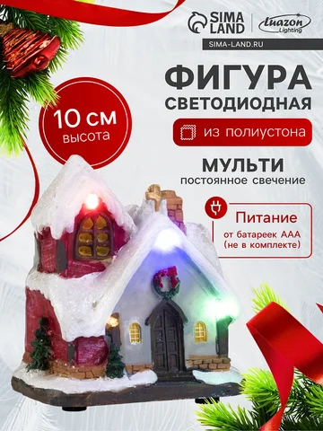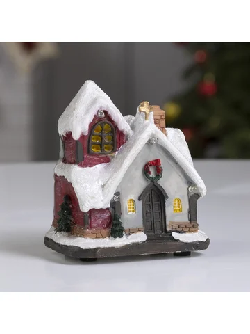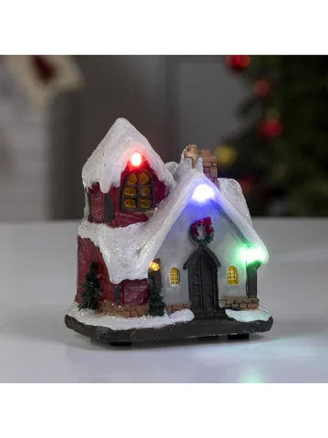 Светодиодная фигура «Заснеженный дом» 9×10×6 см, полистоун, от батареек АААх3, свечение мульти.