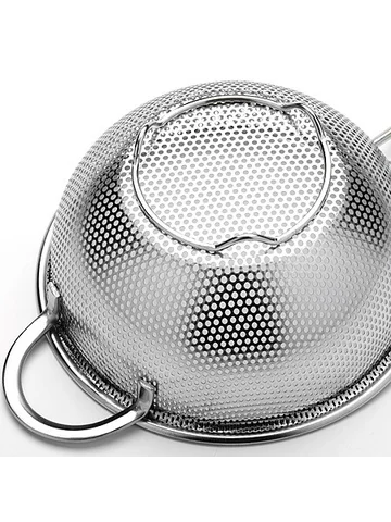 Металлический дуршлаг круглой формы от MAYER BOCH — идеальное решение для вашей кухни! Стильный дизайн и прочность нержавеющей стали делают его незаменимым помощником в приготовлении вкусной пищи. Он соответствует гигиеническим стандартам и требованиям. Продукты, попадая в дуршлачок, начинают танцевать веселый танец, добавляя радости в процесс готовки. Этот кухонный аксессуар подходит для сливания водички с варенных овощей, макарончиков, риса и прочего. Он также подходит для промывания мелких ягодок, таких как смородинка, вишня, клубничка, малинка. Дуршлаг с ручкой легко моется в посудомоечной машине и может использоваться как сушилка для овощей и фруктов. Кухонное сито идеально подходит для разморозки мяска и рыбки. Фруктомойка оснащена маленькими отверстиями и ее удобно брать с собой на природу. Универсальную стальную рисомойку можно мыть в посудомоечной машине. Сито металлическое — полезный инструмент для кухни, дачи и отдыха на природе. Его сетка из нержавеющей стали никогда не зажавеет от влаги. Дуршлачок можно применять как корзинку для фруктов. Подарите его своей любимой женщине, маме, бабушке, подруге, сестре, коллеге на Новый год, Рождество, день рождения, юбилей, 8 Марта, новоселье или другой праздник. Этот практичный подарок обязательно порадует любую хозяюшку.