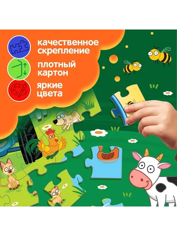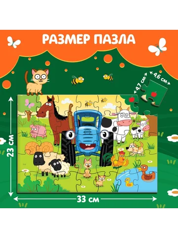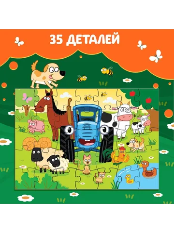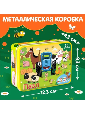 Пазл в металлической коробке «Синий трактор», 35 деталей. Пазл «Синий трактор» в металлической коробке — это увлекательный набор для детей от 3 лет, который погружает в мир любимых мультгероев и увлекательных приключений. В комплекте 35 деталей из плотного картона, которые легко соединяются между собой, создавая яркий прямоугольye. картинку размером 33×23 см. Идеальный выбор для развития внимания, усидчивости и пространственного мышления. Особенности