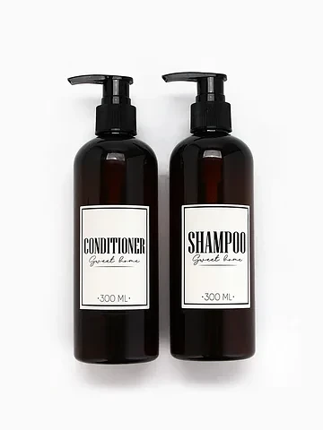 Дозатор для шампуня и кондиционера Sweet home, 300 мл., набор 2 шт.. Используя наши косметические дозаторы, можно избавиться от визуального шума и прийти к единому стилю, а так же экономно использовать косметику. Наклейки на всех бутылочках влагостойкие, износостойкие, легко клеятся. Наши бутылочки для ванной и кухни - это сканди аксессуары для уюта Вашего дома. Уберите эти разноцветные баночки, флаконы и кричащие этикетки.