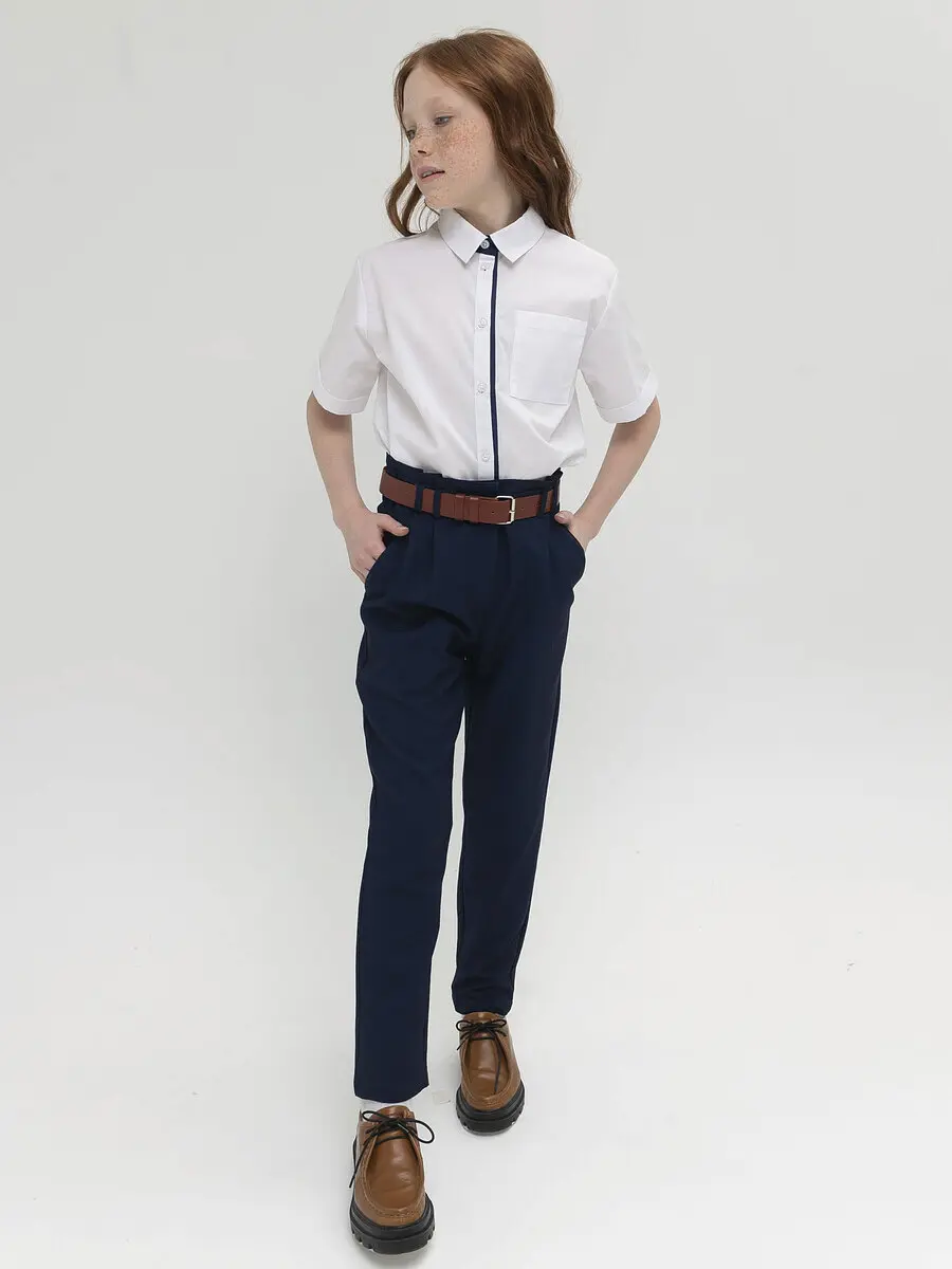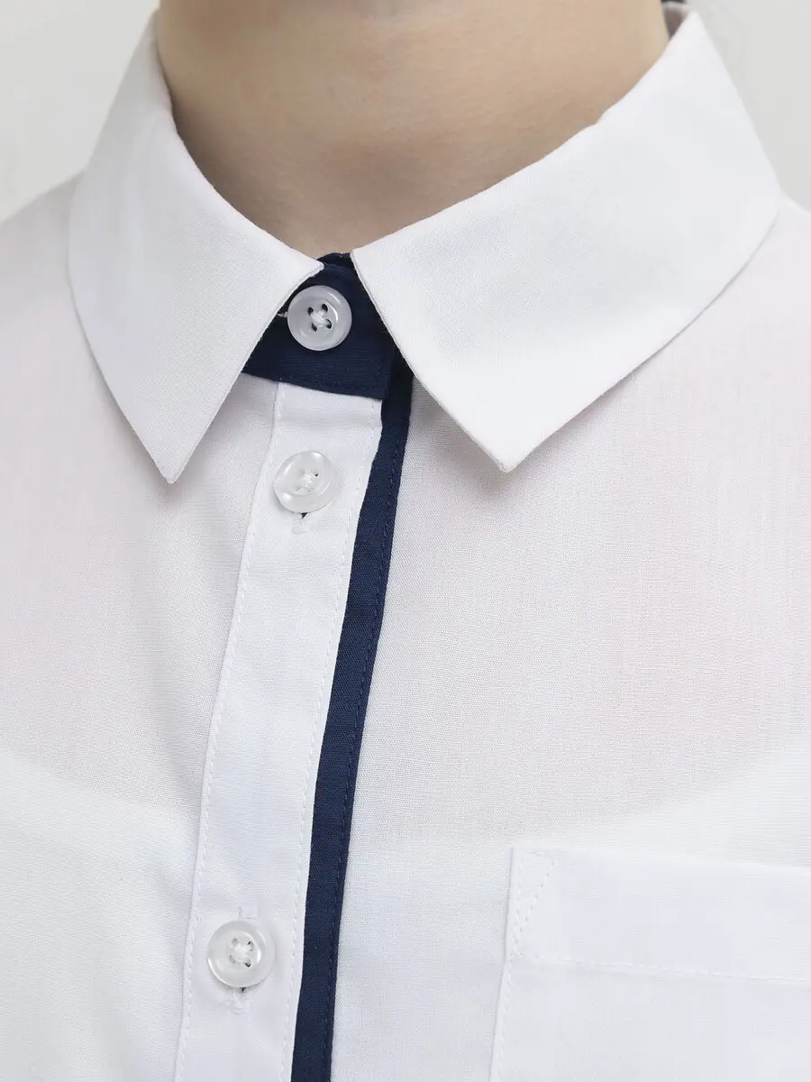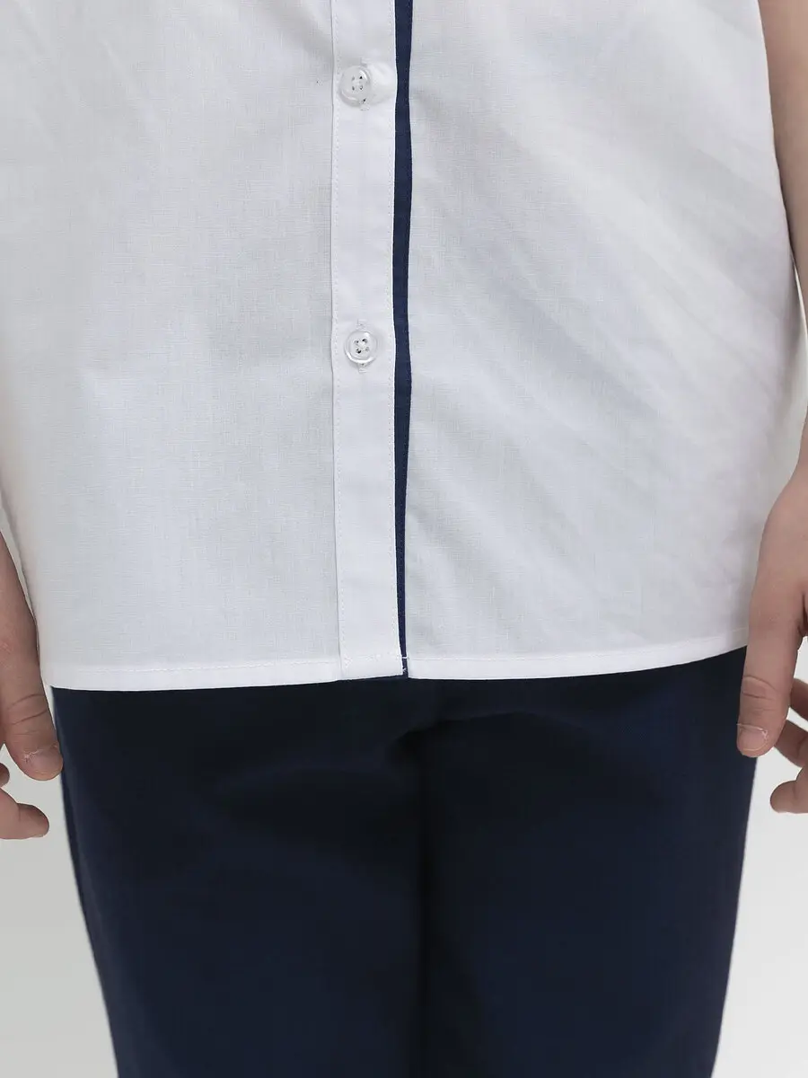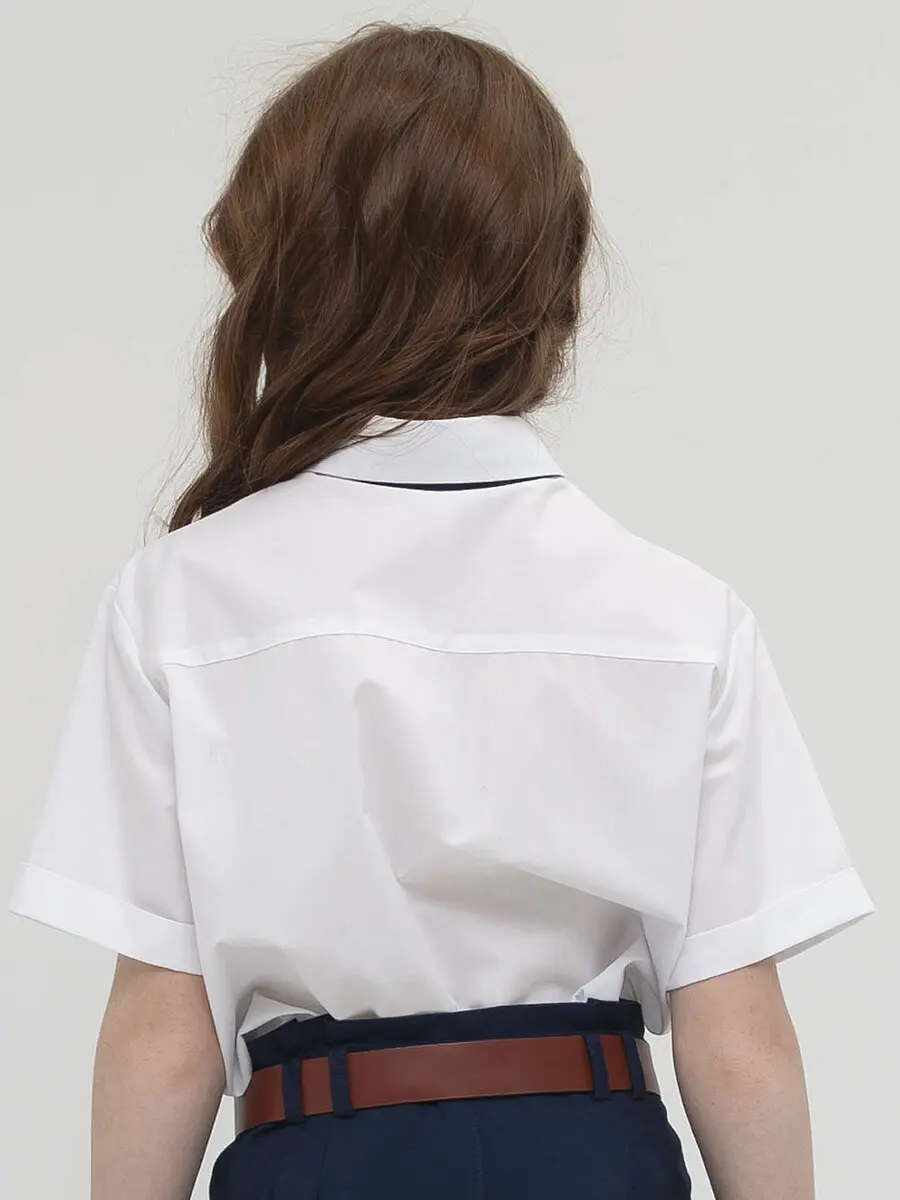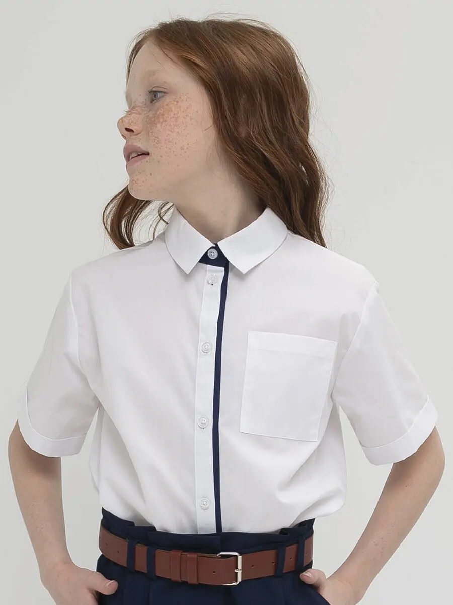 Школьная блузка для девочки с классическим отложным воротником — идеальный выбор для стильных школьниц на 1 сентября и повседневку. Блузка детская свободного силуэта подходит для девочек с первого по четвертый класс с разным типом фигуры, обеспечивая комфорт и свободу движений. Слегка увеличенный объем плечевого пояса оставляет движения первоклашки свободными, а наличие накладного кармана на груди придает практичности. В составе ткани преобладает высококачественный хлопок — школьная блузка превосходно пропускает воздух, обеспечивая комфорт в течение дня. Благодаря полиэстеру изделие меньше мнется и долго сохраняет форму, что делает его надежным в использовании. Для школьных блузок мы используем сорочечную ткань, плотностью 100 гр/м2. Блузка для девочки школьная декорирована контрастными вставками на стойке воротника и нижней планке застежки, придающими модели особый шарм. Темные цветные вставки позволяют реже стирать изделие, что делает его уход более удобным. Белая блузка для девочки — незаменимый элемент школьной формы, который подчеркнет стиль и аккуратный вид школьницы. Рекомендуемый уход: стирать при температуре не выше 30 °С, без предварительного замачивания, с изнанки, и расправить перед сушкой. Это поможет сохранить качество и цвет на длительное время. Выберите нужный размер по таблице размеров на фото. Обратите внимание, что цвет товара на экране вашего устройства может отличаться от реального цвета изделия.