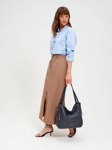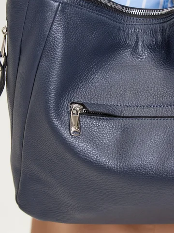 Очень хорошая кожа,аккуратно сшита,вместительна,цвет глубокий синий,как на снимке и как в описании.Сумки люблю объёмные.Благодарнось магазину за качественный товар!