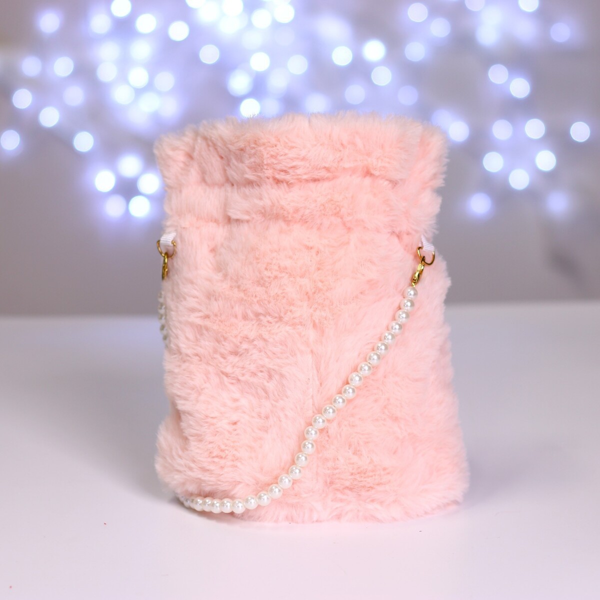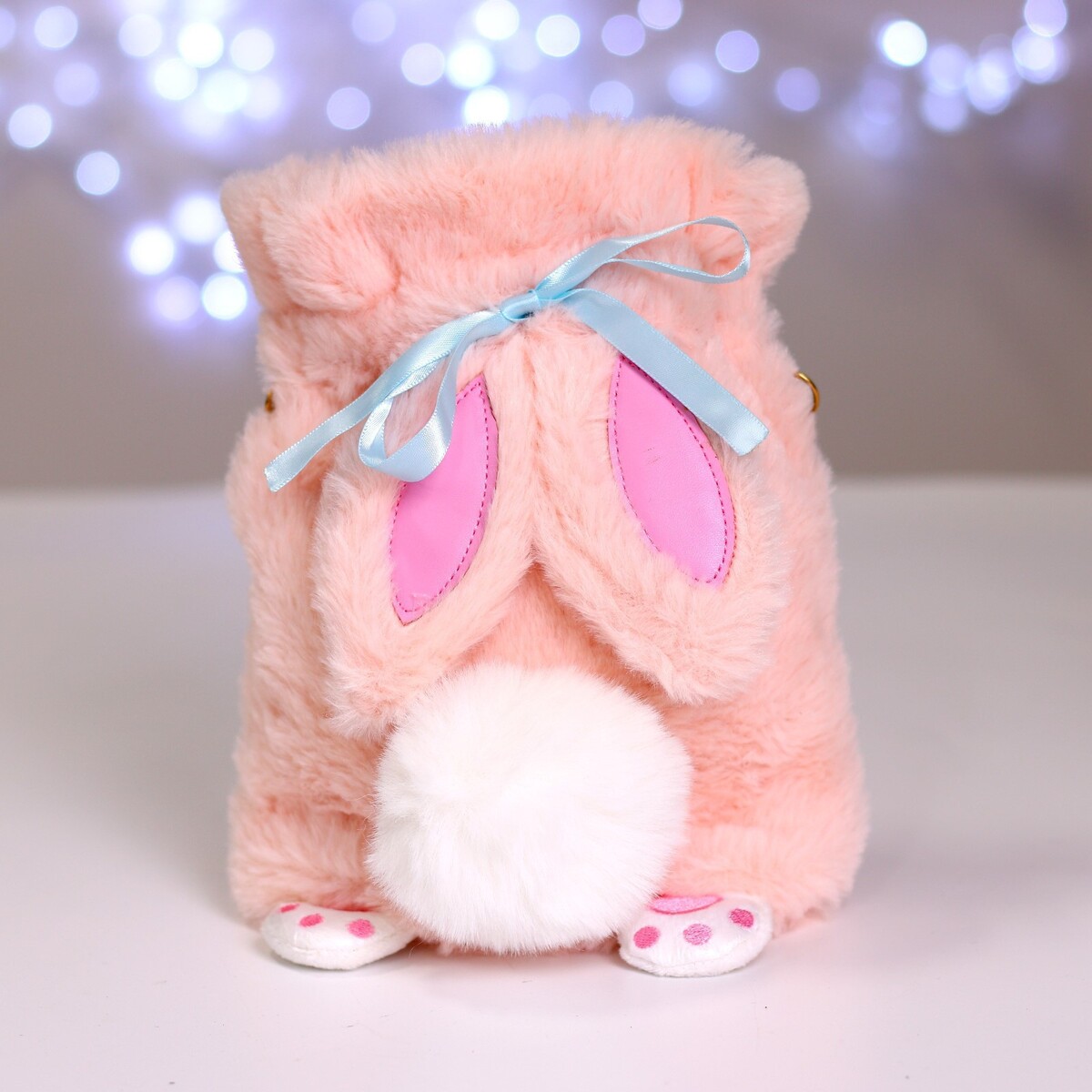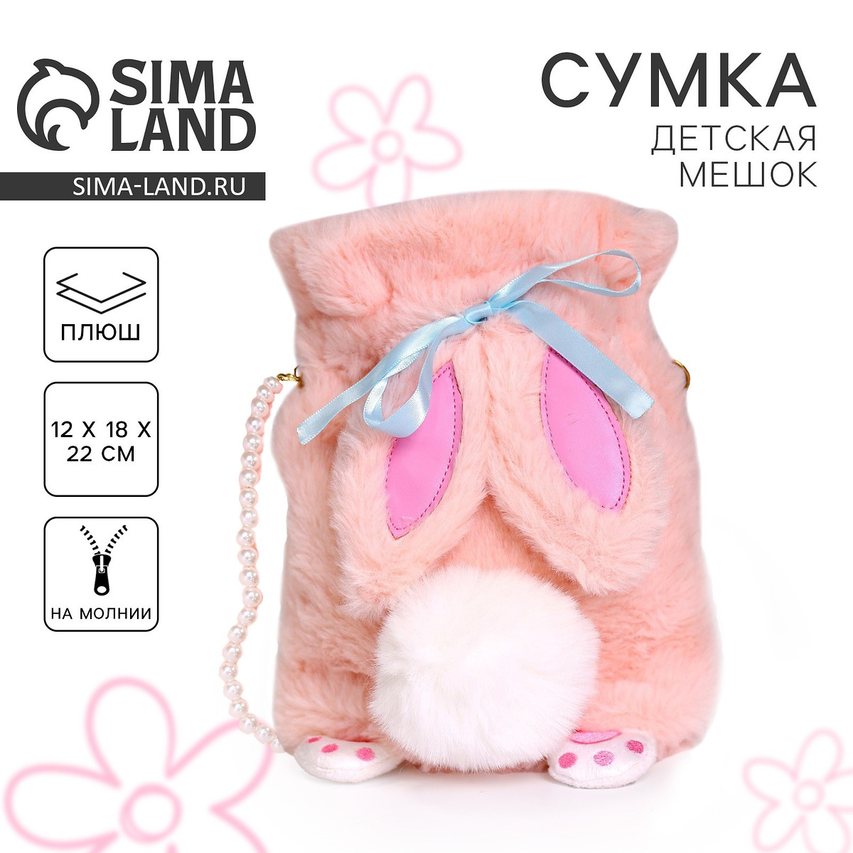Сумка-мешок детская плюшевая «Зайка», розовая, 22×18×12 см.