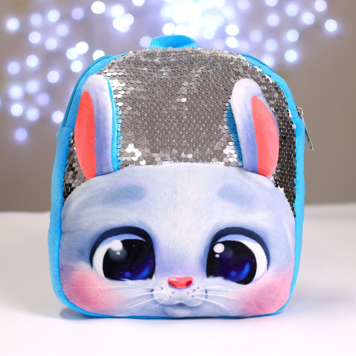 Рюкзак детский плюшевый для девочки «Зайка белый» с пайетками, 26×24 см. В новогодние праздники нужно уделить особое внимание подаркам. Рюкзак станет отличным подарком для вашего ребенка. Яркий аксессуар с новогодней символикой станет верным спутником в ежедневных делах малыша: дорогие сердцу мелочи всегда будут рядом. Рюкзачок закрывается на молнию. В зависимости от роста ребенка можно отрегулировать длину плечевых лямок. Текстильная сумочка не создает дополнительной нагрузки на спину и удобно фиксируется на спине. В рюкзак поместится все самое необходимое: конфеты, игрушки, книги, раскраски и все то, что необходимо для Вашего ребенка. Новогодний рюкзак исполнен из качественного, безопасного и прочного материала.