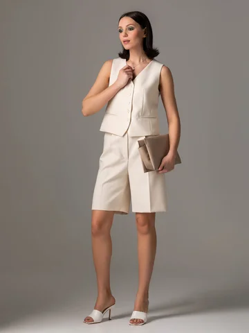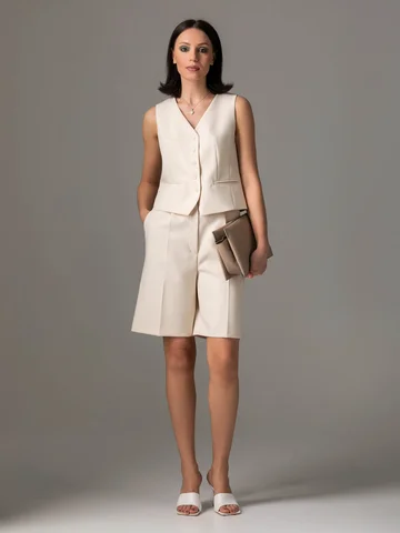 Шорты понравились. Ткань плотновата для жаркого лета. Взяла вместе с жилетом. Костюм вполне подойдёт для офиса, если не "жесткий" дресс-код.