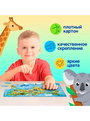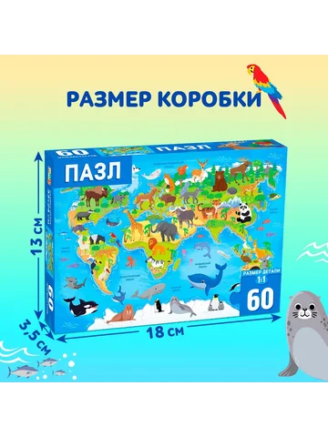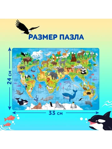 Пазл «Животные мира», 60 элементов. Пазл — это занимательная развивающая игра, которая стимулирует познавательную активность и помогает упорядочить мысли. Польза собирания пазлов для детей: