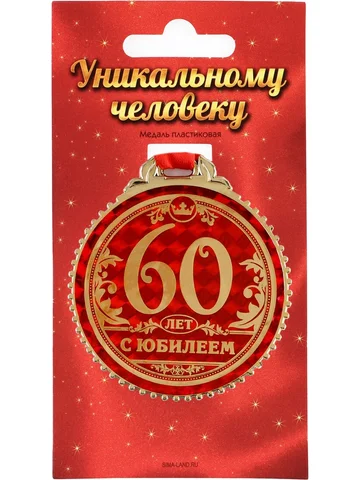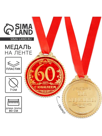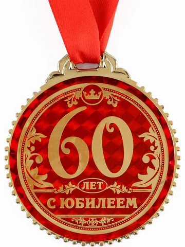 Медаль юбилейная «60 лет с юбилеем», d=7 см. Медаль юбилейная «60 лет с юбилеем», d=7 см станет презентом, который запомнится надолго. С ней получатель почувствует себя важным и особенным. Он непременно сохранит этот яркий сувенир на память! Изделие дополнено красной лентой и помещено на подарочную подложку.