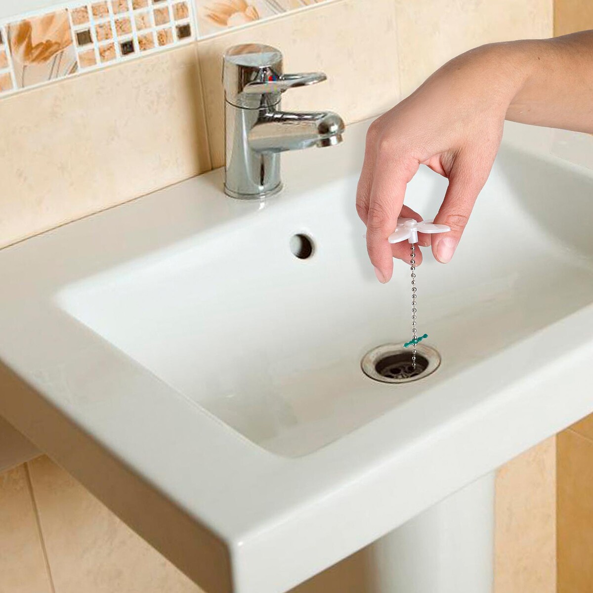 Улавливатель работает, волосы на нем скапливаются отлично. Но минус в том что цепочка из металлических шариков. Если оставить в сливном отверстии на долго цепочка ржавеет и ломается. Может надо было бы ее сделать из другого материала. А так задумка очень даже неплохая