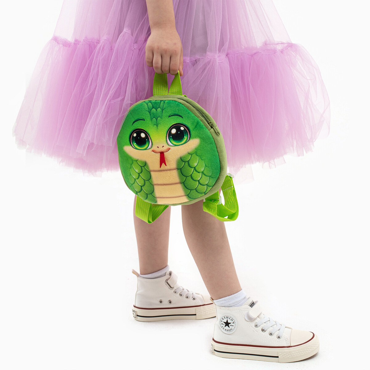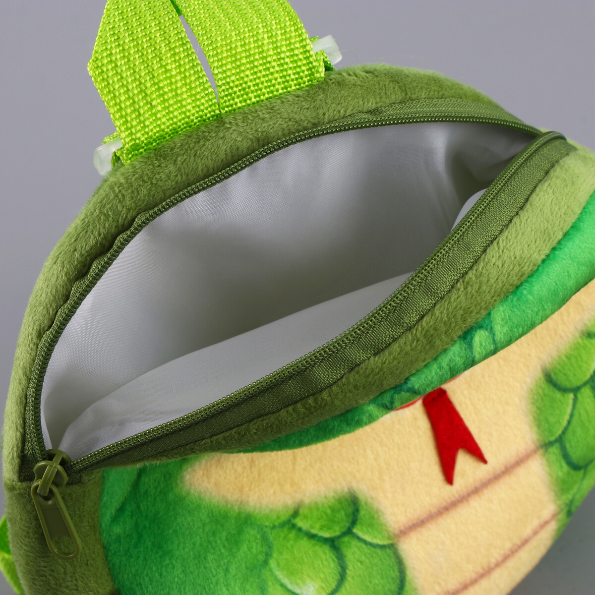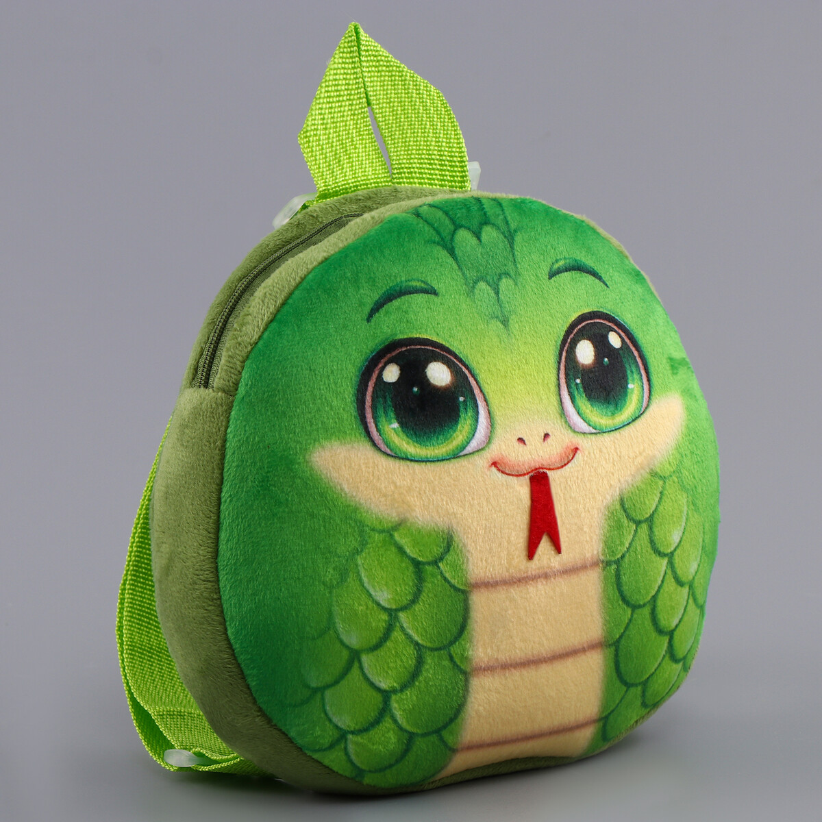 Рюкзак детский «Веселая змейка», плюшевый, зеленый. В новогодние праздники уделите упаковке подарков особое внимание. Ведь разворачивание презента в самую волшебную ночь года — особенный ритуал, такой же сказочный, как и само торжество. Тематический рюкзак станет прекрасным оформлением вашего гостинца. В него можно положить что угодно: конфеты, игрушки, любые приятные мелочи. Он сделает ваш презент особенным и сама станет запоминающимся подарком. А обычные сладости, упакованные таким образом, превратятся в настоящий сюрприз.