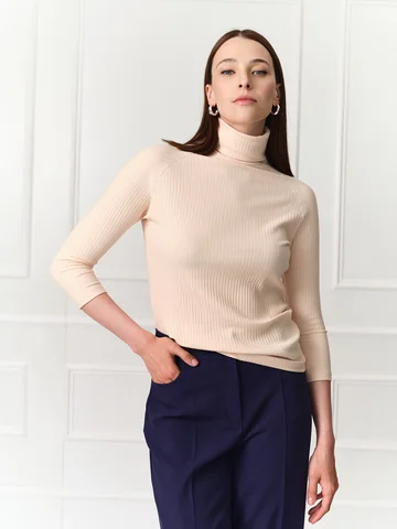 Мягкий уютный джемпер оттенка чая с молоком получился максимально комфортным благодаря высокоэластичному трикотажу. Высокий воротник комфортно облегает шею, рукава реглан длины 7/8 не сковывают движения. Хлопковые и вискозные нити обеспечивают идеальную терморегуляцию, бархатистый рубчик на поверхности не пилингуется с течением времени. На фото джемпер представлен с брюками Б-802 ФИС(О4).