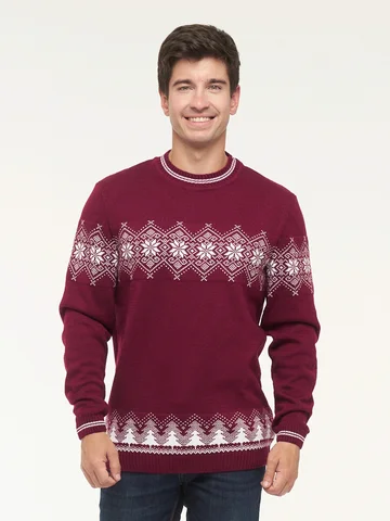 Оригинальный свитер вишнёвого цвета с белым орнаментом. На орнаменте трикотаж немного плотнее. Соответствует описанию и фото. Рекомендую.