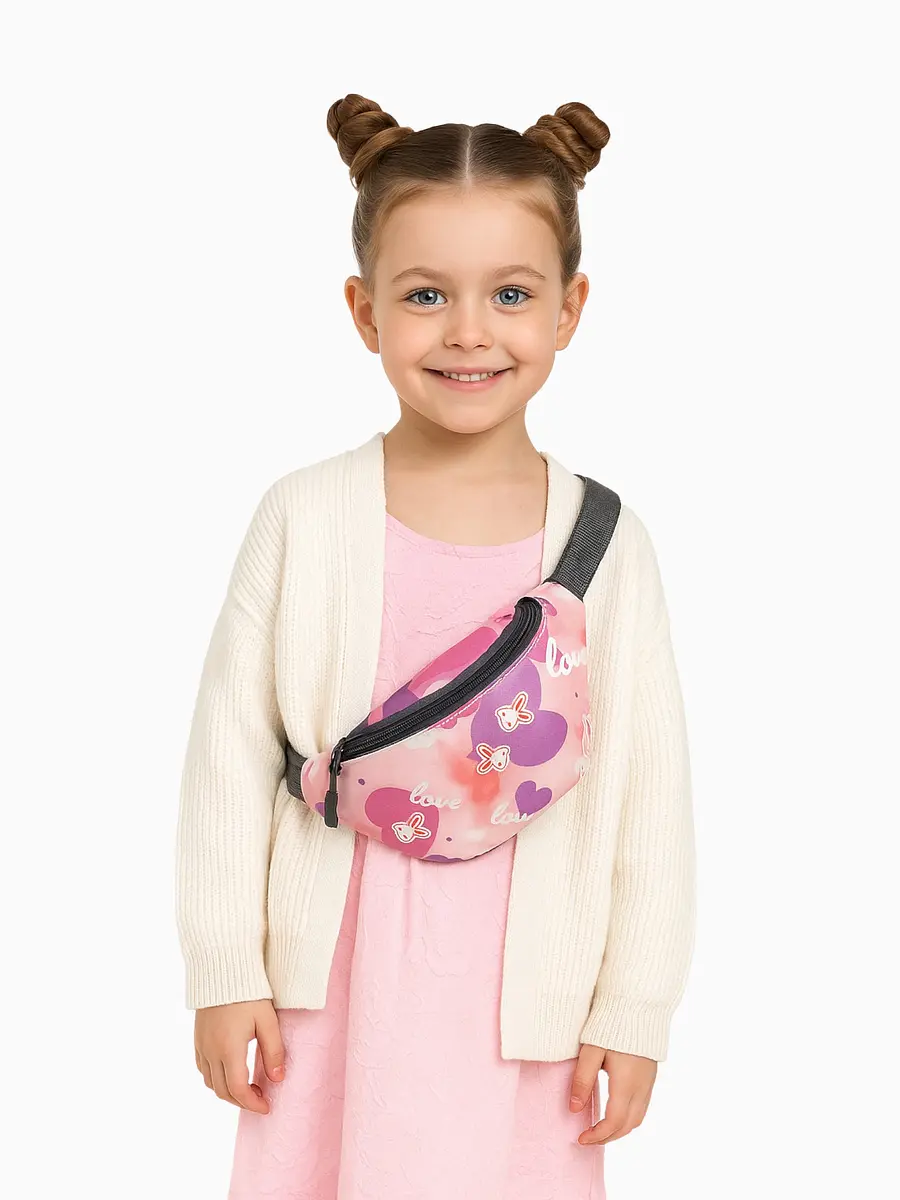 Сумка поясная детская для девочки на молнии, коралловая. Эта коралловая поясная сумка создана для активных девочек, ценящих яркие акценты в образе. Она станет верным спутником на прогулках, в парке или во время встреч с подругами, освобождая руки для игр и сохраняя важные мелочи в полной безопасности. Романтичный рисунок в виде сердца добавляет образу нежности и индивидуальности. Особенности