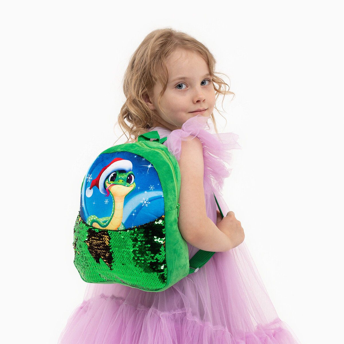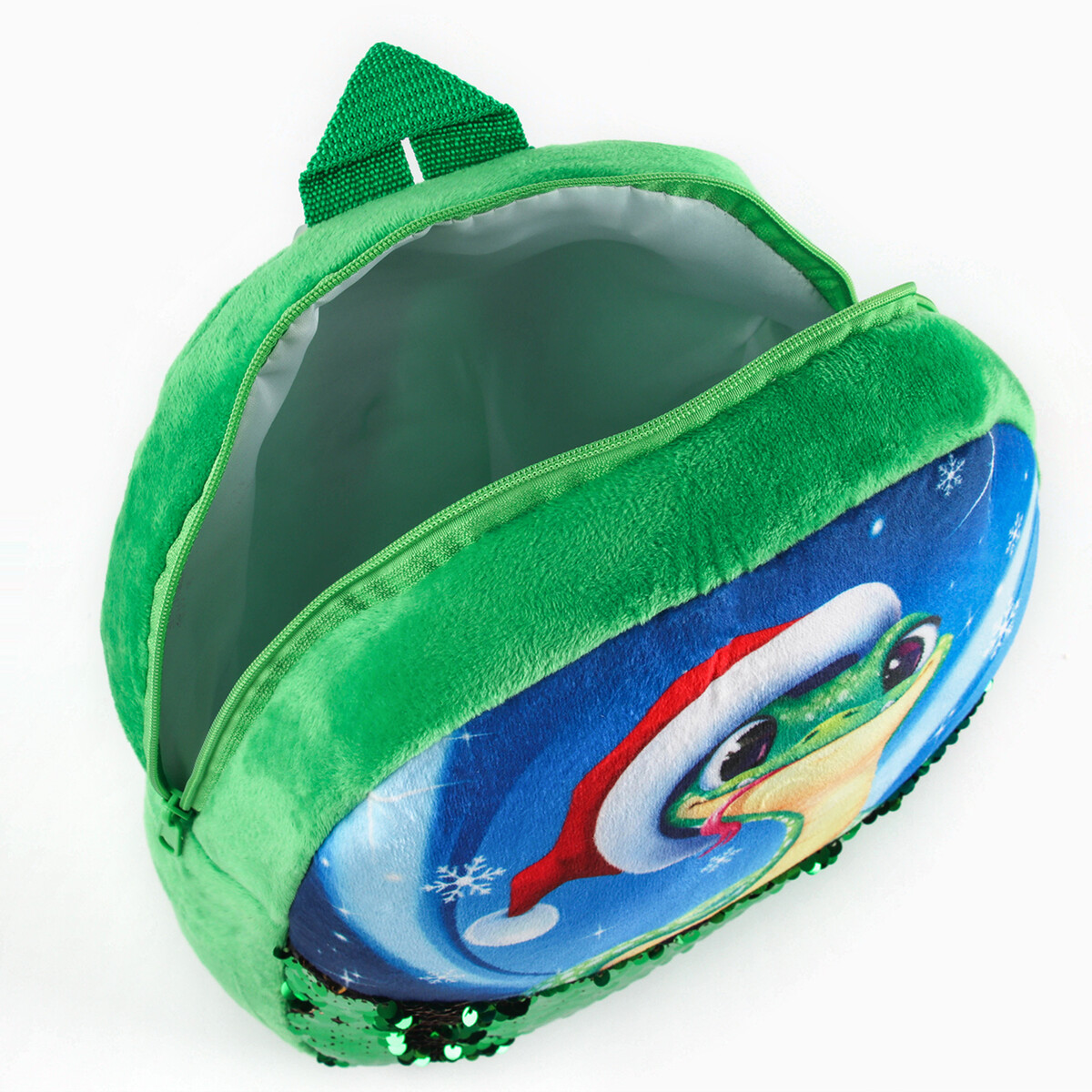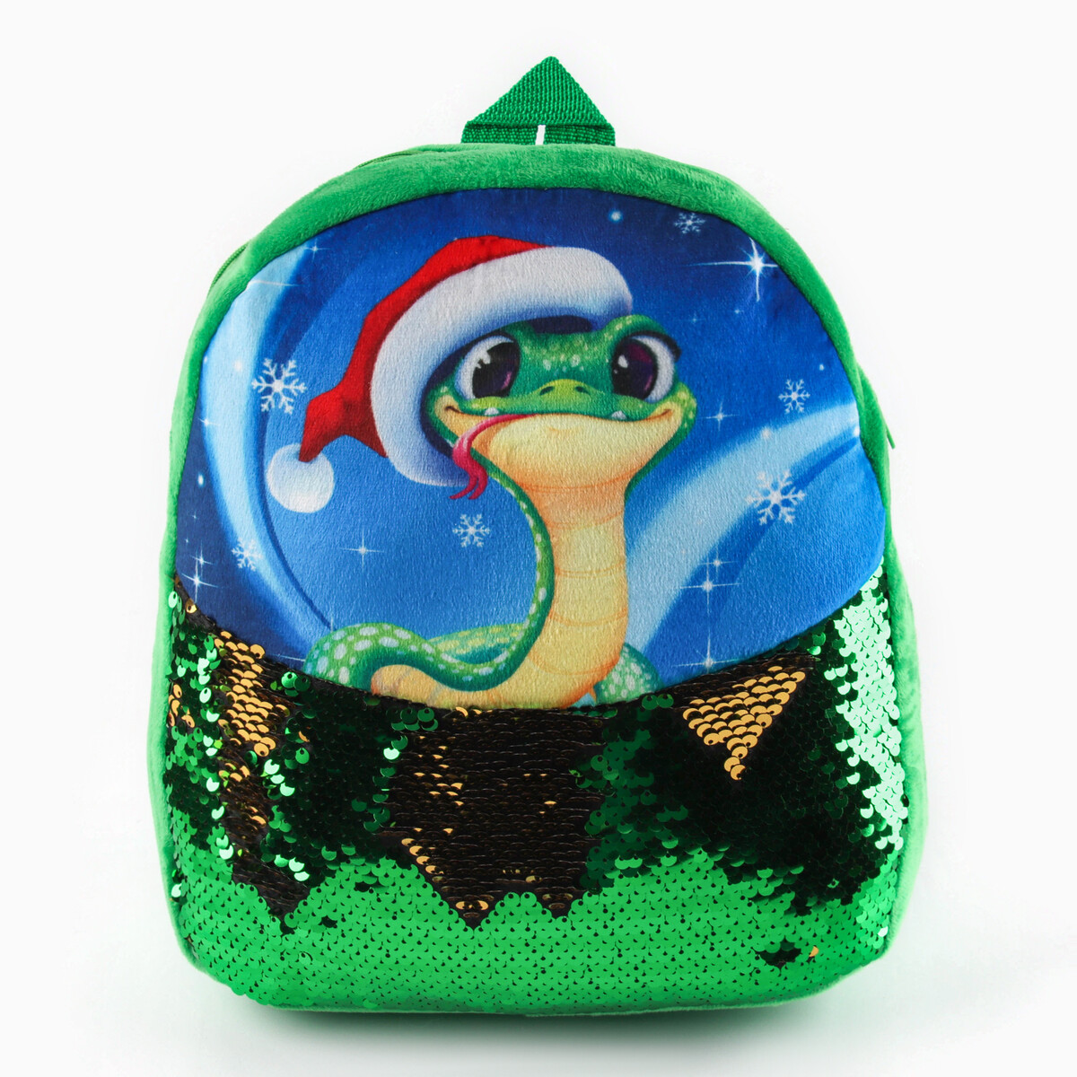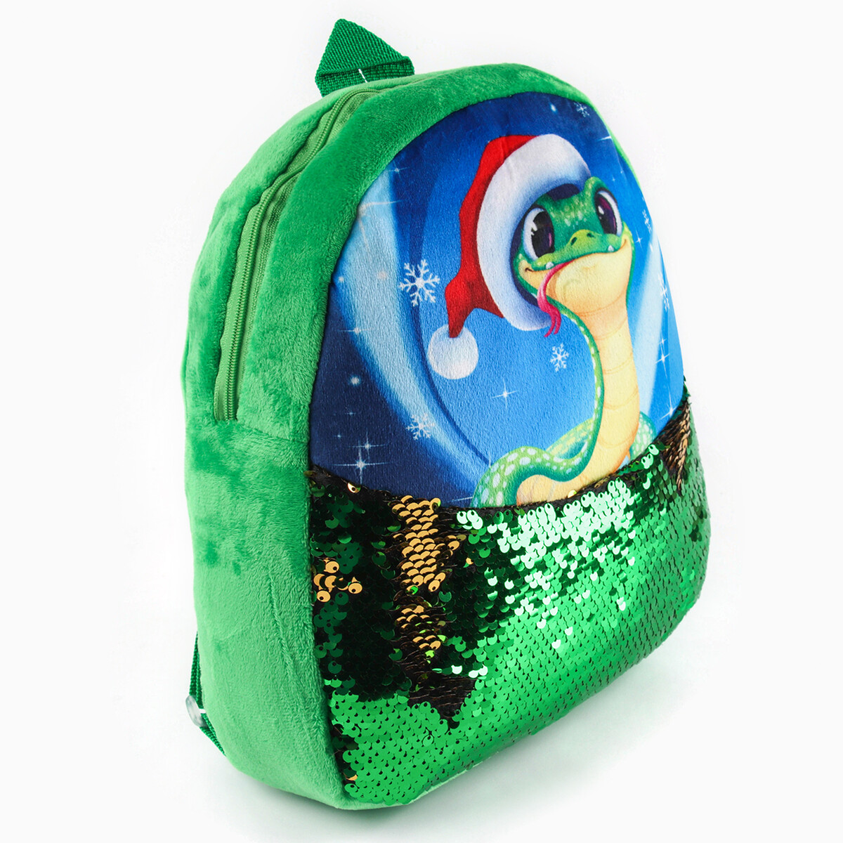 Рюкзак детский новогодний «Змейка» с пайетками, 23×28 см зеленый. В новогодние праздники уделите упаковке подарков особое внимание. Ведь разворачивание презента в самую волшебную ночь года — особенный ритуал, такой же сказочный, как и само торжество. Тематический рюкзак станет прекрасным оформлением вашего гостинца. В него можно положить что угодно: конфеты, игрушки, любые приятные мелочи. Он сделает ваш презент особенным и сама станет запоминающимся подарком. А обычные сладости, упакованные таким образом, превратятся в настоящий сюрприз.