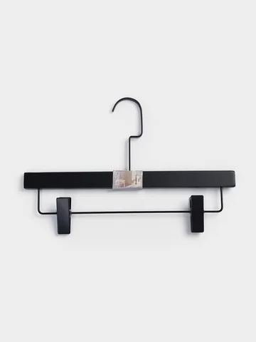 Вешалка для брюк и юбок LaDо́m Black Lotus, 35×1.1×24 см, длинный крюк, с зажимами, черная. Брюки и юбки разных фасонов и моделей имеют одно общее свойство: их сложно хранить. На неудачно сложенной одежде могут появиться заломы и складки, из-за чего вещи приходится гладить повторно. Это маленькое неудобство можно решить с помощью специального предмета. Вешалка для брюк и юбок LaDо́m Black Lotus – это компактное приспособление, которое позволит вам разместить в гардеробе классические штаны из легких или плотных материалов. Изделие практичной формы занимает мало места, что позволяет экономить пространство в шкафу. Преимущества: Небольшой размер; Долговечность; Удобство эксплуатации; Безопасное покрытие.