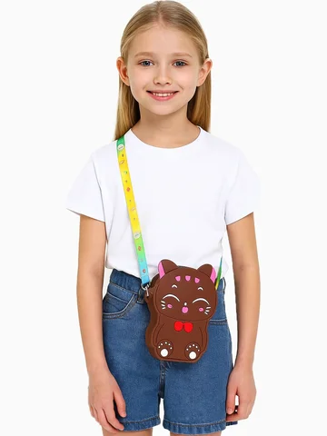 - Очаровательный дизайн: Сумочка украшена милым котиком, привлекая внимание своим уникальным и забавным изображением. Такой аксессуар не только радует глаз, но и подчеркивает индивидуальный стиль вашей дочки.