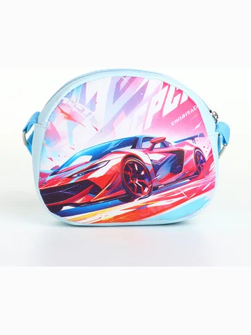 Сумка детская «Автомобиль», на молнии, голубая. Эта голубая сумка через плечо создана для юных исследователей, ценящих практичность и стиль. Свежий оттенок и динамичный принт делают ее идеальным спутником для прогулок, поездок и ежедневных приключений. Регулируемый ремень обеспечивает комфортную посадку, а надежная молния сохраняет все важные мелочи в безопасности. Особенности модели