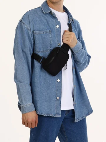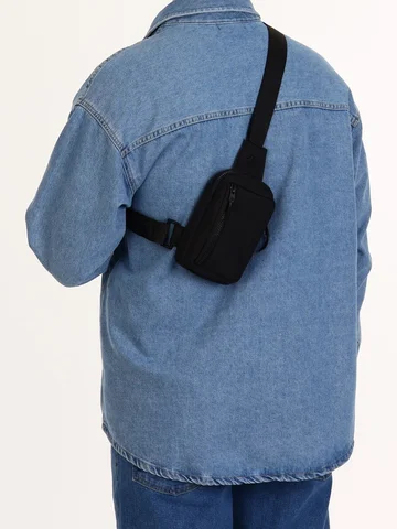 Сумка - слинг через плечо, из текстиля, черная.